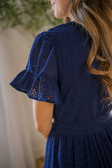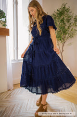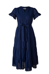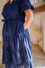 The white eyelet dress you've always wanted. This eyelet dress features pockets, functional buttons, a removable waist tie, and a midi-tiered skirt. A flattering fit for all body types, this is a classic dress that is an essential addition to your closet.